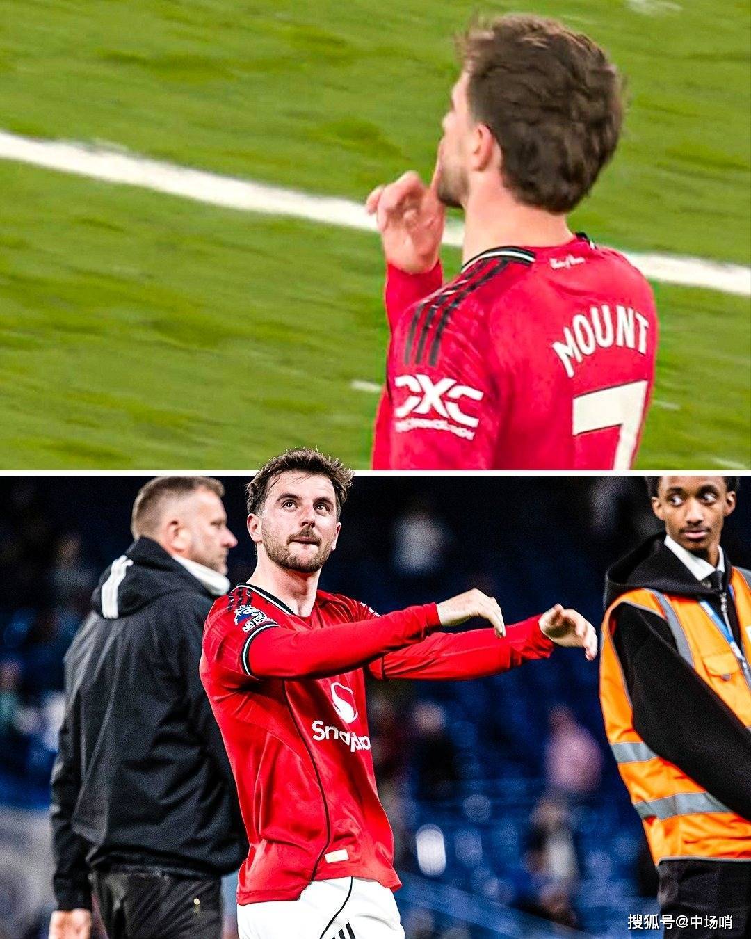 然后,在曼联已将胜局锁定、终场哨即将吹响之际,芒特将右手食指竖在嘴唇前,做出了一个清晰的"嘘"的动作。